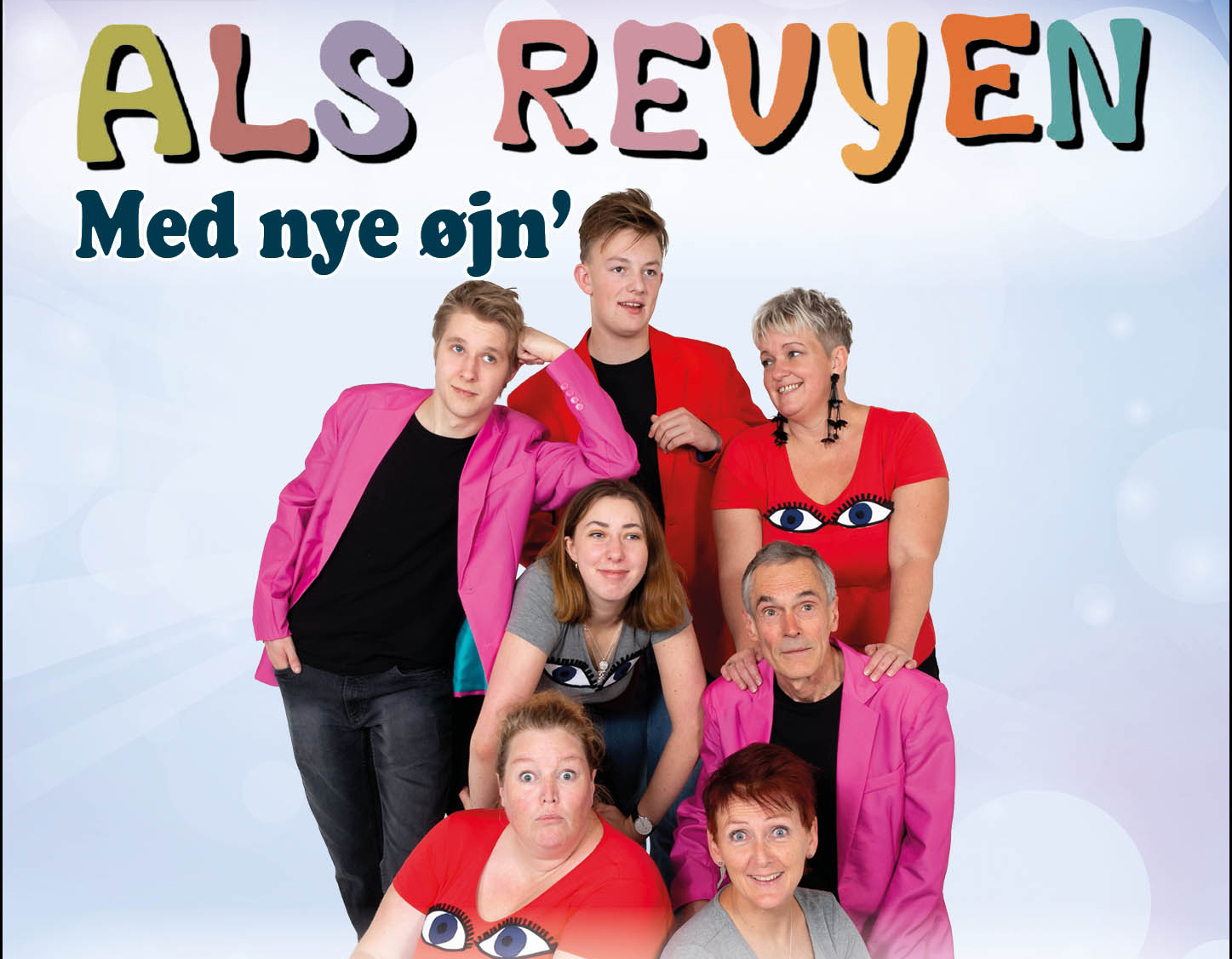 Med Als Revyen 2019 kom et begyndende generationsskifte i revyteamet, så derfor titlen "Med nye øj'n". Kristian Asmussen Gude-Hansen blev ny instruktør efter Peter Buhl, der efter 40 år med Augustenborg og Als Revyen havde valgt at trække sig lidt i baggrunden.